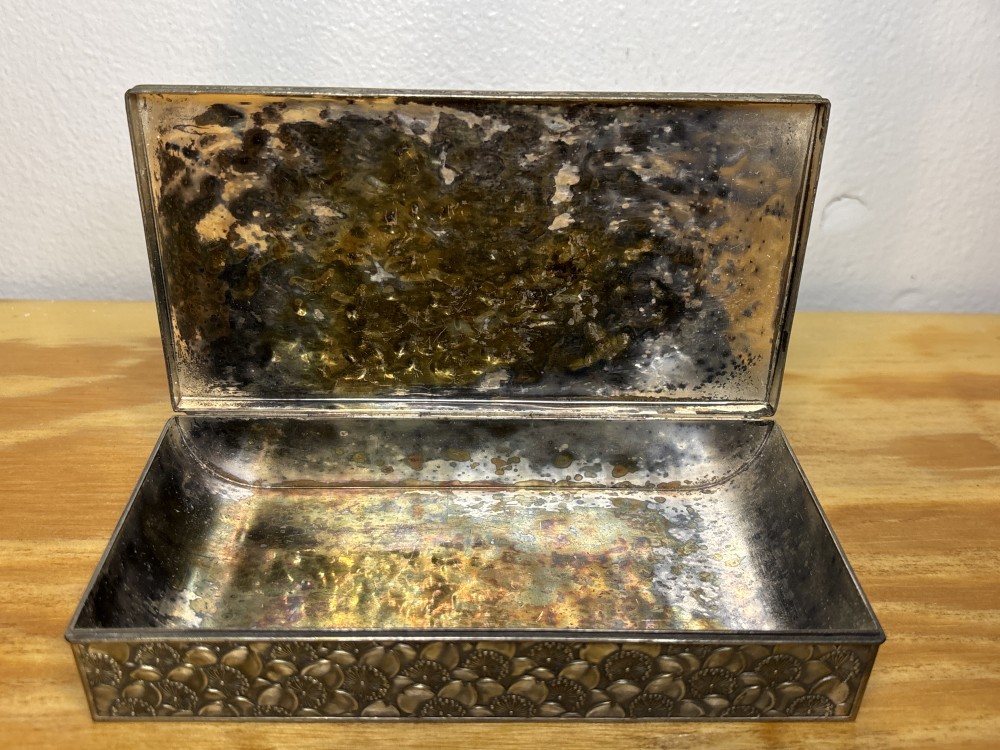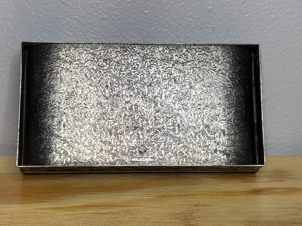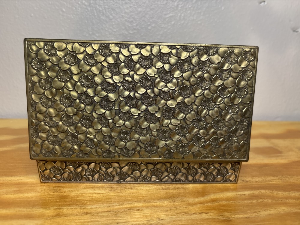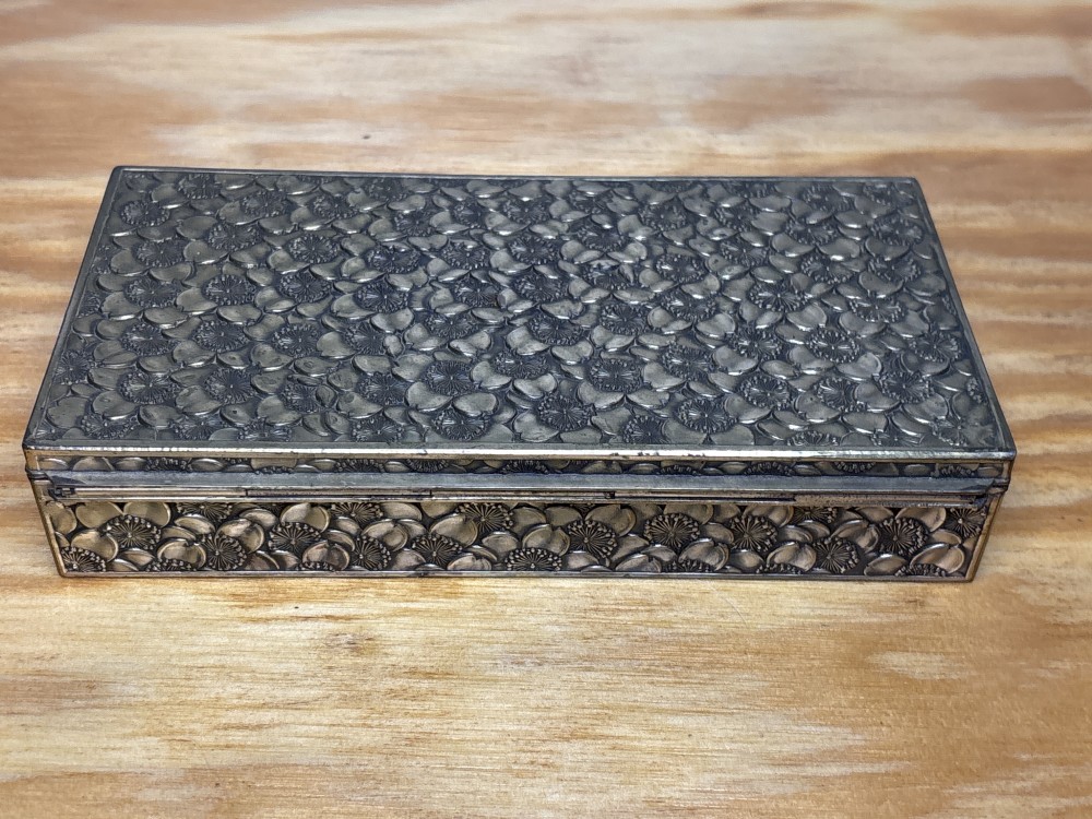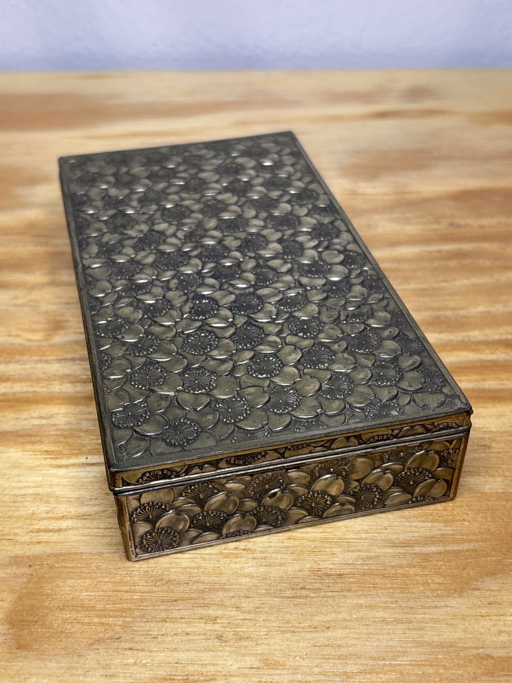 Mid Century Japanese Silver Plated Trinket Box by Matsuda – Embossed Cherry Blossom Design – Made in Japan