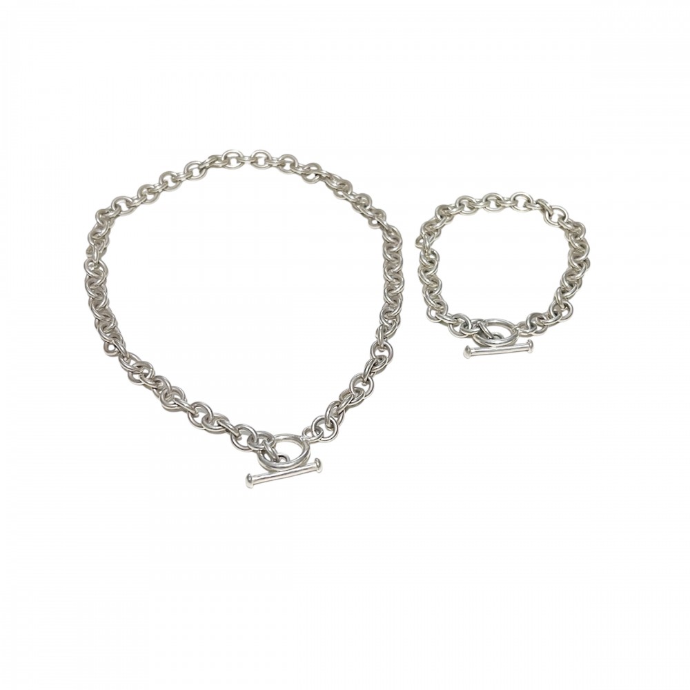 16 inchToggle Necklace with Matching Bracelet Wt: 51 total grams, unmarked, acid tested as sterling silver