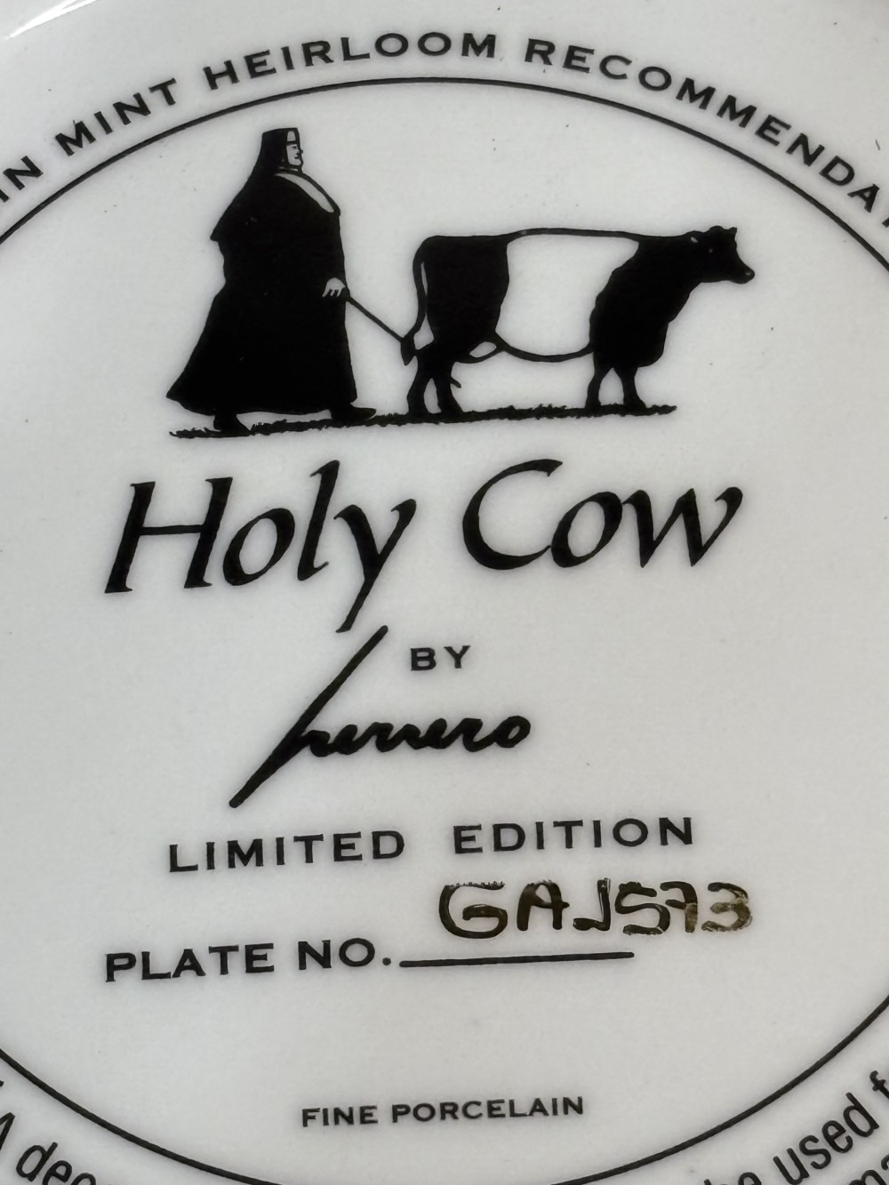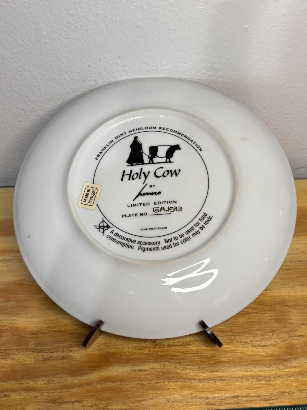 Franklin Mint Holy Cow Collector Plate by James Lumbers – Limited Edition 24K Gold Trim. Made in Portugal