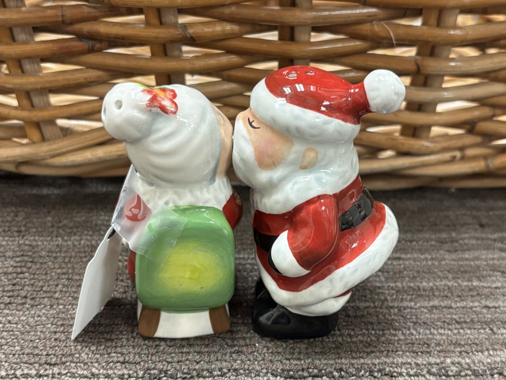 Westland Santa & Mrs. Claus Kissing Salt & Pepper Shakers Ceramic Christmas Holiday Decor